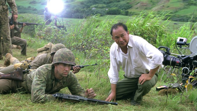Pictured: Nicolas Cage and John Woo on the set of Windtalkers. Photo courtesy MGM. Windtalkers is available for streaming on Prime Video.